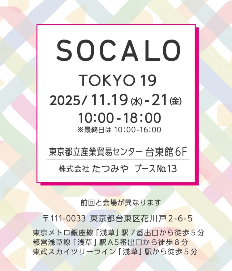 展示会「SOCALO_TOKYO 19」へ出展いたします
